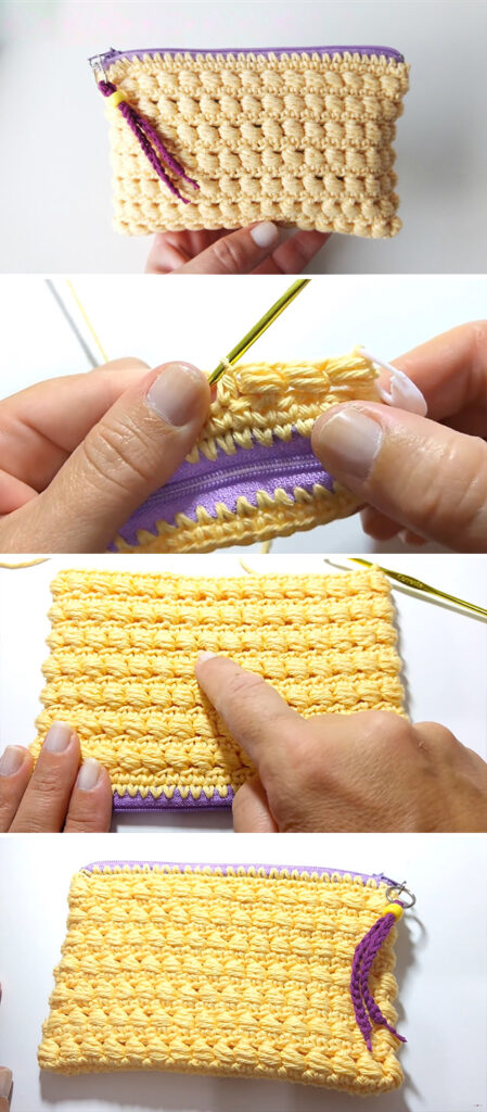 This crochet bag with a zipper is both functional and budget-friendly, requiring less than 50 grams of yarn to create. Perfect for carrying your everyday essentials, it also doubles as a wallet! The addition of a zipper ensures practicality and keeps your coins and small items securely in place.
