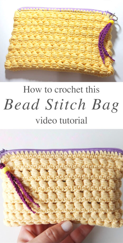 This video tutorial will teach you how to make a handy violet and yellow crochet bag with a zipper. Keep reading for a materials list and tips on various situations you can use this cute bag for!