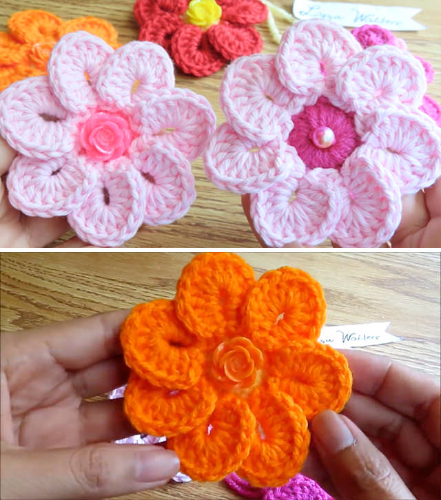 These delightful crochet flowers are ideal for adding a touch of charm to your living room or bedroom! Arrange them into beautiful clusters to decorate your coffee or dining table, or craft a stunning runner to enhance any surface. They also make lovely accents for your bedroom dressers, infusing your space with warmth and timeless appeal. To create these flowers, choose two complementary yarn colors of your preference. Be sure to use 100% acrylic yarn and a size 4 crochet hook for the best results!