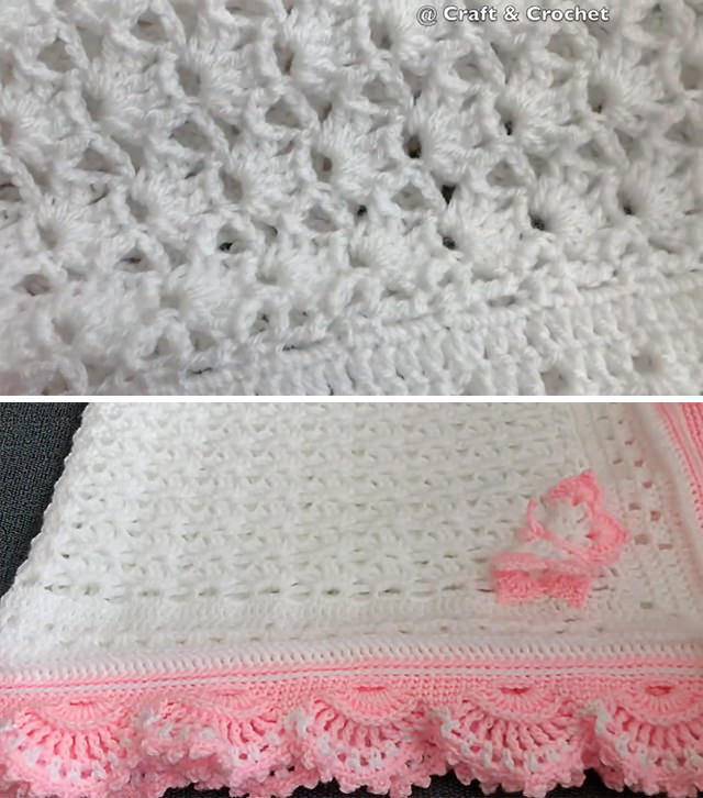 Tutorial and photos of this baby blanket by: Craft & Crochet.