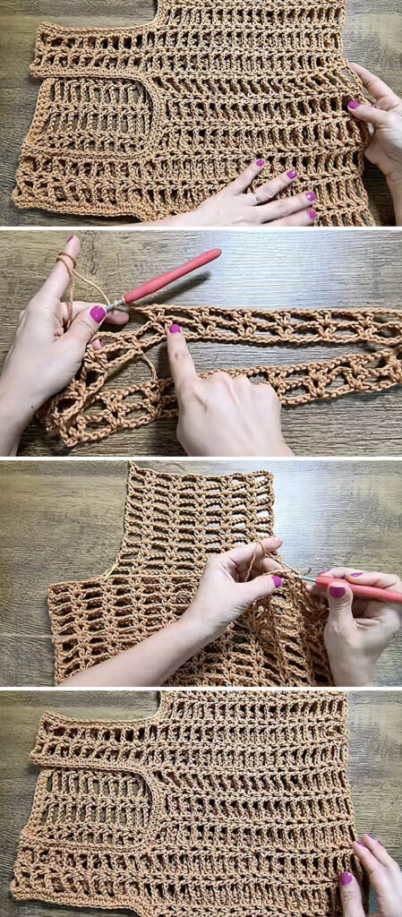 Start with a chain base that fits half your bust measurement. Work rows of tall stitches like double or treble crochet, interspersed with chain spaces to build the lace. - Shaping the Armholes