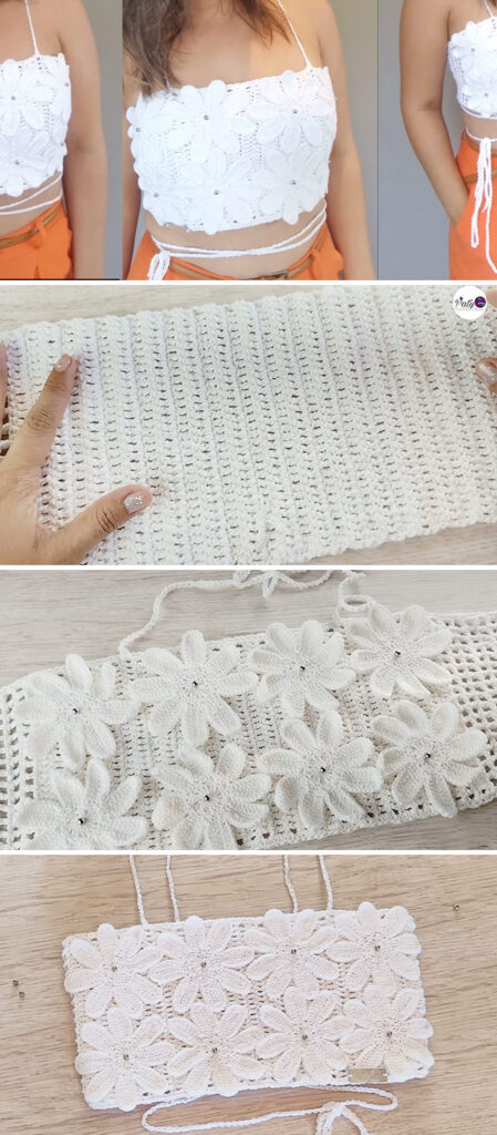 There’s no better way to embrace sunny, breezy days than with a white crochet top adorned with delightful handmade floral details.