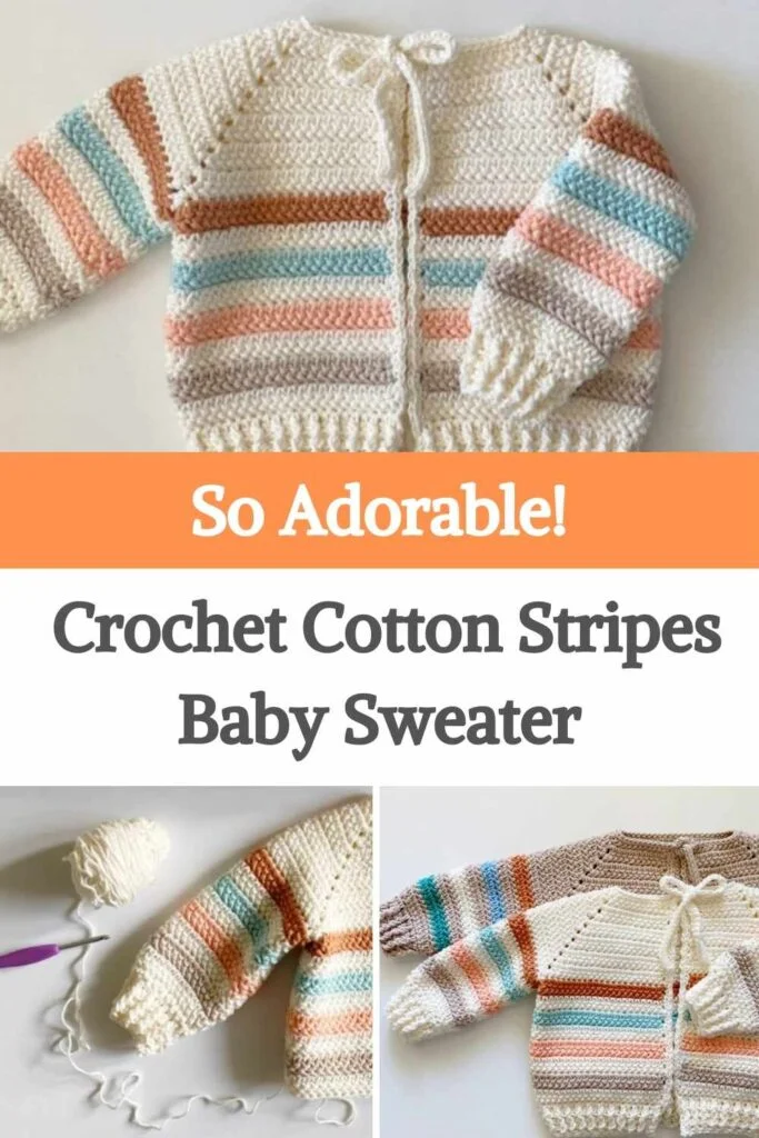 A Crochet Cotton Stripes Baby Sweater truly is so adorable! — perfect for warm-weather wear while still offering comfort and style. Made with soft, breathable cotton yarn, this sweater is gentle on sensitive baby skin and easy to care for. The classic striped pattern adds visual interest and a playful charm, making it ideal for both baby boys and girls. Using simple stitches like single crochet (SC) or half double crochet (HDC), the sweater works up quickly, making it a satisfying project even for newer crocheters.