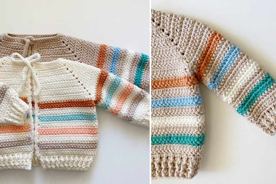 Typically crocheted from the top down in a raglan style or with basic front and back panels, the sweater’s construction is straightforward and beginner-friendly. The stripes are created by alternating yarn colors every few rows, and the pattern allows flexibility in choosing pastel shades, rainbow brights, or minimal two-tone combos. For added functionality and cuteness, many versions include button closures on the shoulder or back to make dressing easier for little ones.