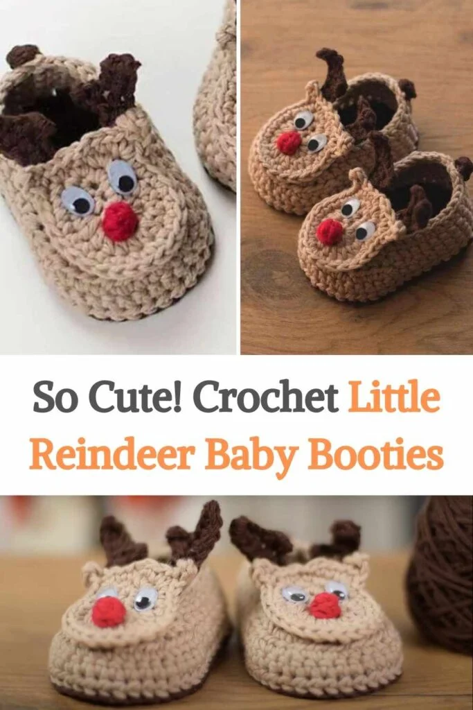 Crochet Little Reindeer Baby Booties are a delightful handmade project that perfectly blends whimsy, warmth, and holiday spirit. These baby booties are designed to resemble a cute little reindeer, complete with a red nose (just like Rudolph), mini antlers, and soft floppy ears. Crafted using baby-friendly yarn—typically soft acrylic or cotton—they are both gentle on delicate baby skin and durable enough for everyday use. The festive look makes them especially popular during Christmas time, whether for holiday photoshoots, family gatherings, or baby’s first Christmas gift. Their small size and charming character make them a perfect project for crochet lovers looking to make something heartfelt and seasonal.