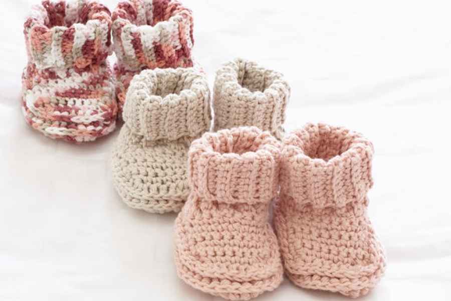 Crochet Rolled Down Booties are an adorable, cozy footwear option for babies that combine warmth, style, and simplicity. These booties are especially known for their soft, cuffed design, where the upper edge is gently rolled down to create a snug and stylish look. The fold-over cuff adds a touch of charm while also helping the booties stay securely on baby’s feet. They’re great for everyday wear, chilly outings, or even as part of a handmade baby shower gift.