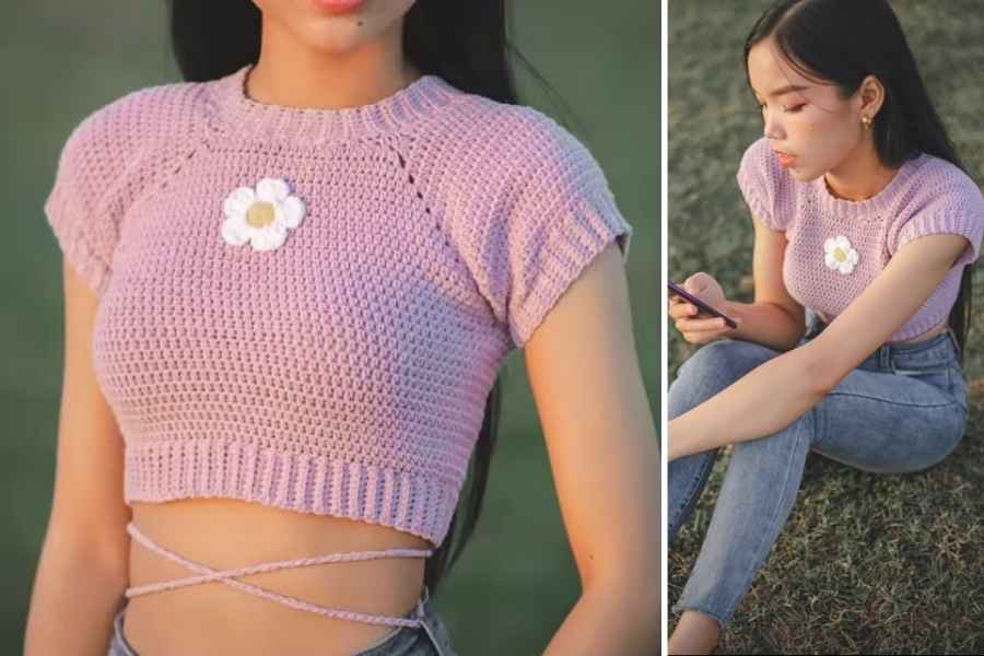 The Beginner-Friendly Crochet Crop T-shirt Tutorial is a great introduction to wearable crochet projects for those who want to move beyond small items. This simple and stylish top is made using easy stitches—usually chains (ch), single crochet (sc), and double crochet (dc)—making it perfect for beginners who have mastered the basics and want to try their first garment. The construction is usually very straightforward, often worked in two flat panels (front and back) that are later seamed together at the sides and shoulders.