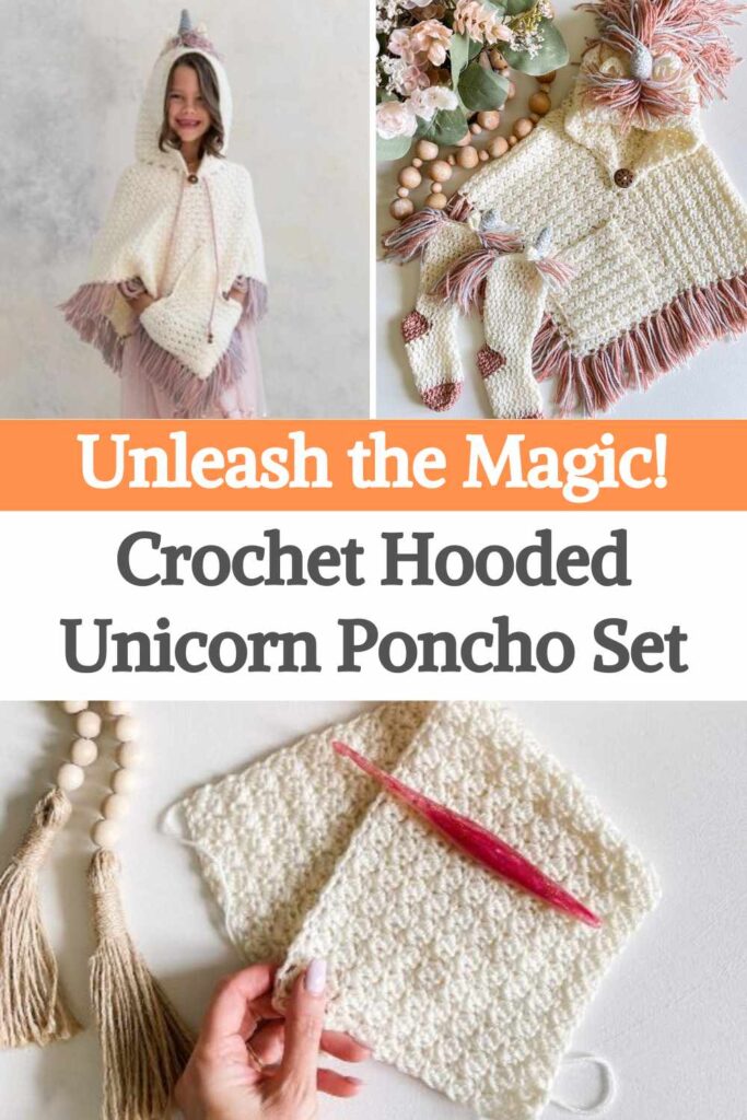 The Crochet Hooded Unicorn Poncho Set is a charming and imaginative crochet project that creates a cozy poncho with a unicorn-themed hood. This set is especially popular for children, featuring playful elements like a horn, colorful mane, ears, and sometimes even a tail. The poncho is designed to be both warm and whimsical, making it a favorite for dress-up, gifting, or simply staying cozy in style.