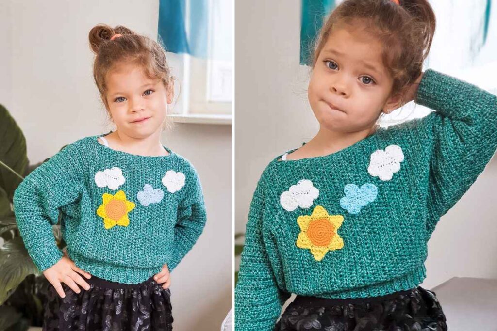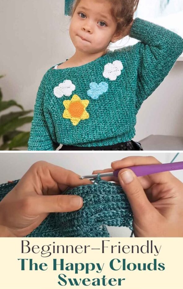 This sweater is not only fun to make but also fun to wear. The happy cloud theme brings a joyful, whimsical touch to a classic piece, making it perfect for kids or playful adults. With its comforting texture and uplifting design, the Happy Clouds Sweater is a great entry point into the world of crocheting garments—and a wonderful way to wear your creativity. Would you like help finding the full pattern online?