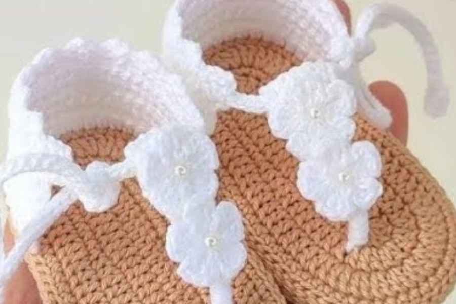 The sandals begin with an oval-shaped sole, worked in rounds using basic stitches like single crochet (sc), half double crochet (hdc), and sometimes slip stitch (sl st) for finishing. Once the sole is complete, the top of the sandal—such as the toe strap, instep, and ankle band—is crocheted directly onto it or made separately and sewn in place. Many designs feature decorative accents like crocheted flowers, bows, hearts, or buttons, adding an extra layer of sweetness.