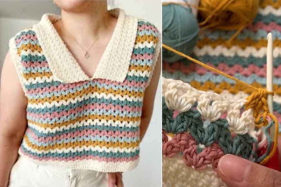 To finish, the video demonstrates how to add optional ribbing or edging around the neckline and armholes for a neat, polished look. The end result is a lightweight, breathable top that’s both fashionable and comfortable, perfect for layering or wearing on its own. This V-neck design flatters a variety of body types and is highly customizable in both length and fit, making it a satisfying and versatile crochet project.