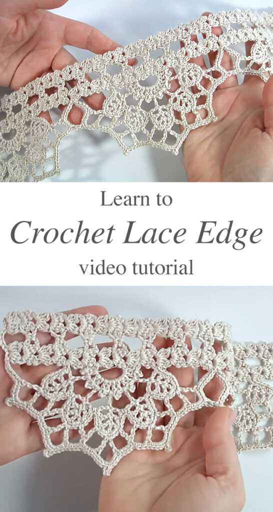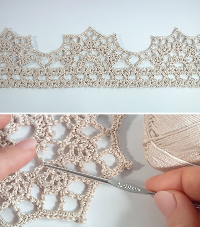 Tutorial and photos of this crochet lace edge by: Crochet.ElenaRugalStudio.