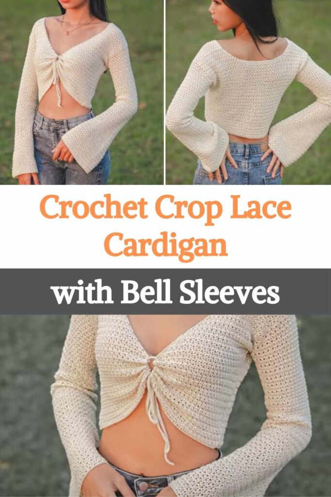 A crochet crop lace cardigan with bell sleeves is a dreamy and lightweight layering piece that adds a touch of elegance to any outfit. Whether you wear it over a sundress or tank top, your handmade cardigan will reflect your creativity, patience, and style. With its romantic shape and graceful sleeves, this is a project you’ll be proud to wear again and again.