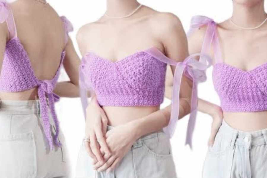 - Crochet cup shapes first: You can create two triangle or curved cups, increasing as you go to match your bust size.
