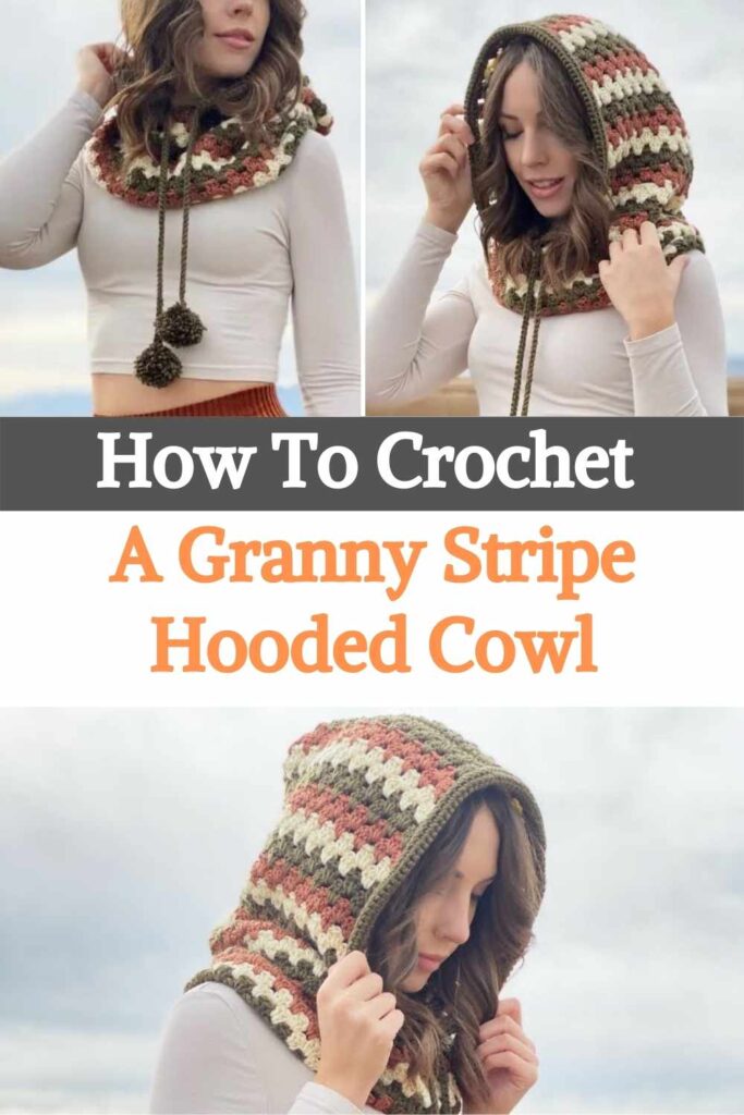 You’ve just made a cozy, stylish granny stripe hooded cowl! It’s great for chilly days and works beautifully with color changes. This is a relaxing project that mixes the comfort of a scarf with the function of a hood — and the granny stitch gives it that classic touch.