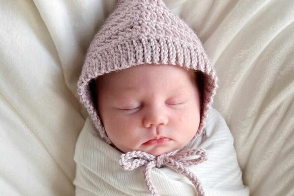 It’s textured, snug, and soft — perfect for a newborn photoshoot or a handmade gift. You can make it in any color and even add a matching pair of booties or a cardigan.