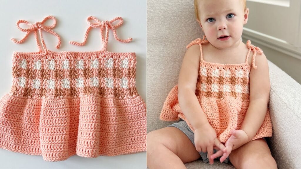 The Gingham Swing Top is a flowy, breezy, and playful crochet top with a charming checkered pattern — ideal for spring and summer. With its roomy shape and soft drape, it’s perfect for active little ones and makes for a beautiful handmade gift.