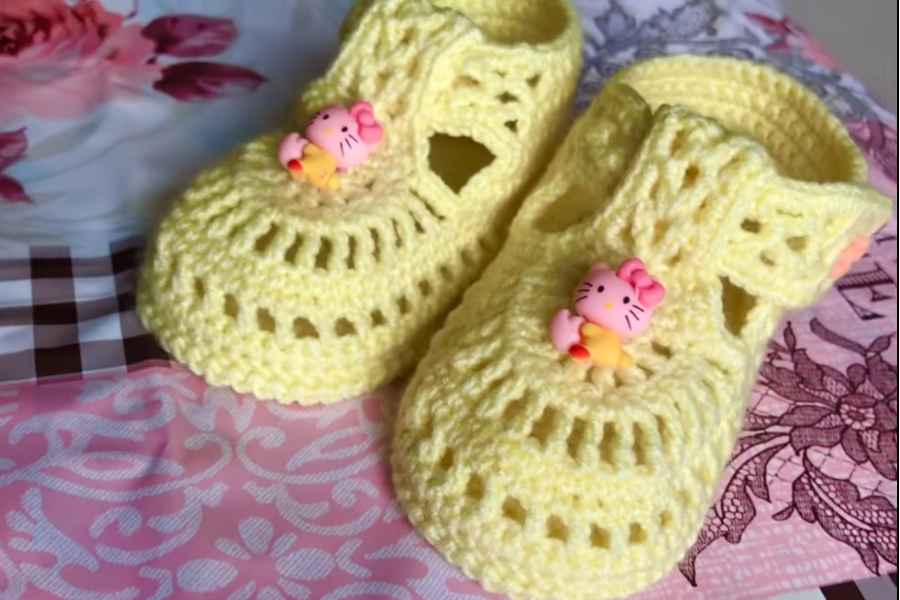 - Crochet a tiny bow or flower and sew it to the front or side of the shoe