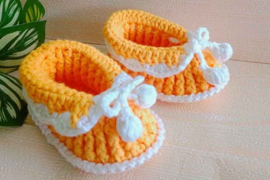 These 3–6 month size crochet booties are perfect for active babies. They feature a comfy sole, a soft upper, and optional decorative touches like a strap or button. They make wonderful handmade gifts and can be styled for boys or girls!
