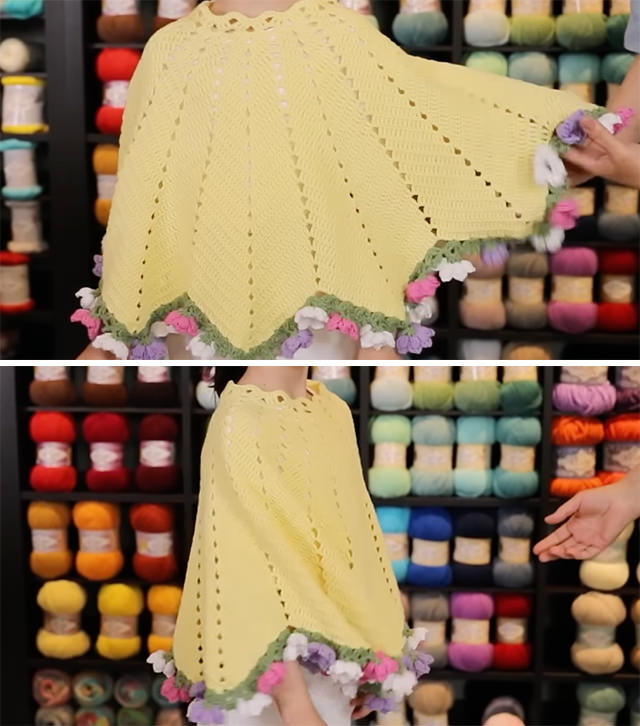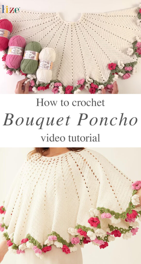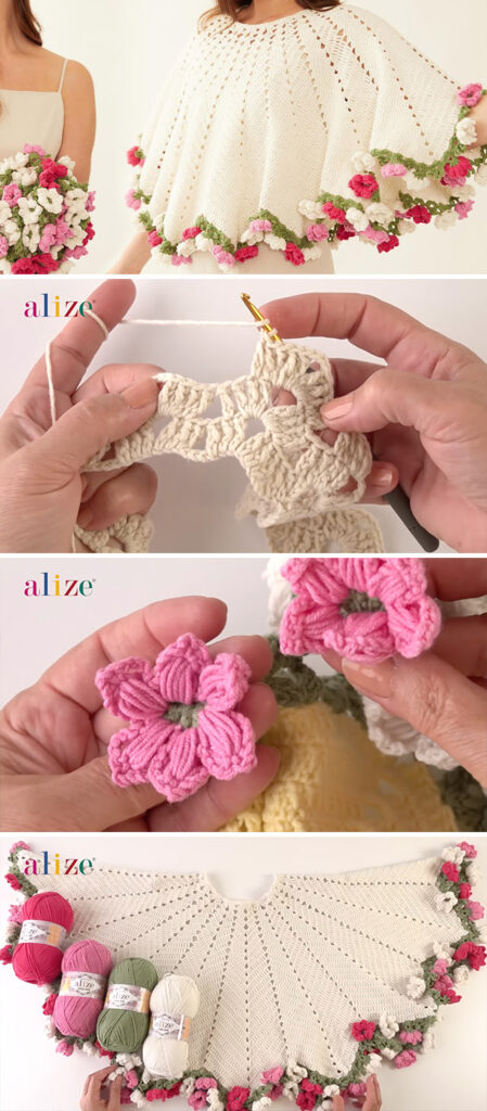 Tutorial and photos of this bouquet crochet poncho by: Alize Yarns.