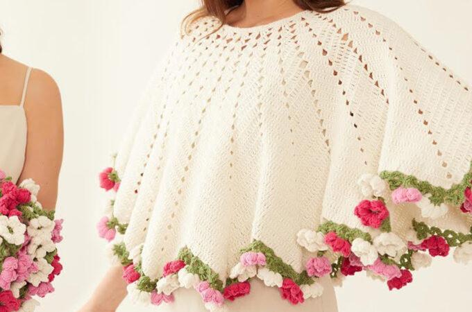 Step into a world of blossoms with the Bouquet Crochet Poncho — a floral-themed statement piece that’s perfect for spring, festivals, or brightening up any outfit. This pattern is beginner to intermediate friendly and made of individual flower motifs joined together to form a light, flowing poncho.