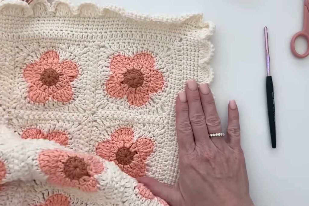 The Desert Blush Field of Daisies baby blanket is a delightful project that combines structure, softness, and charm. With its floral motifs, gentle colors, and detailed edging, it becomes more than just a functional item—it turns into a keepsake. Whether you’re making it as a gift or for your own little one, this blanket brings warmth and love into every stitch.