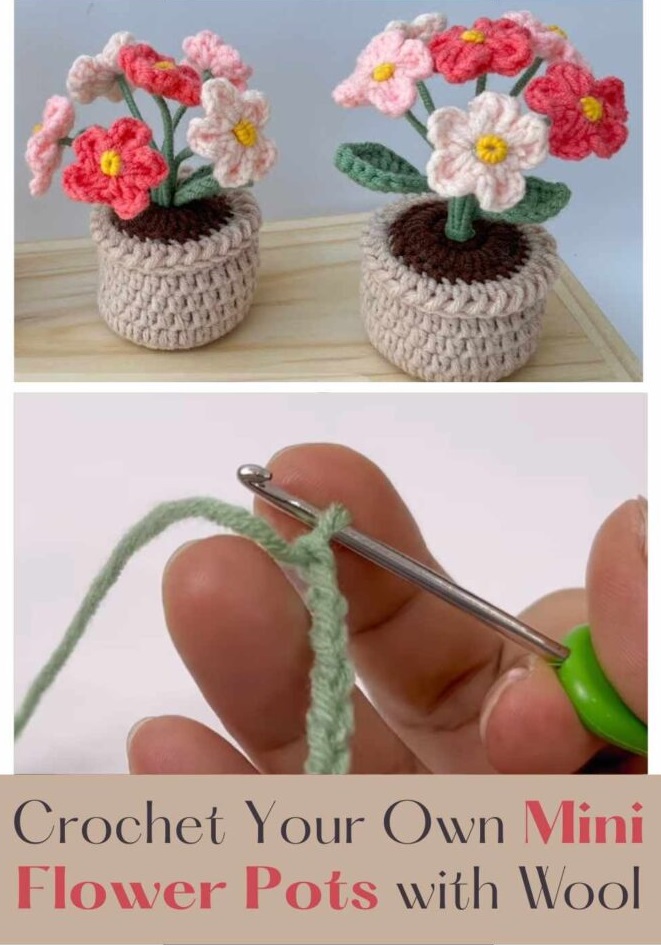 Crocheting your own mini flower pots with wool is a quick, joyful project that’s perfect for using up yarn scraps and practicing circular crochet. These tiny creations make sweet gifts, brighten up small spaces, and are endlessly customizable. Whether you add one cheerful bloom or a whole bouquet, your handmade flower pot will bring handmade charm wherever it sits.