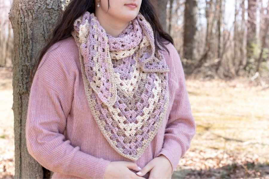 For this tutorial, we’ll make a classic triangle shawl that starts at the center top and grows outward.