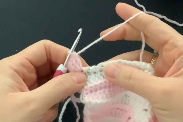 - Work in the Crystal Waves stitch pattern: alternating front-post single crochet and chain-3 clusters with double crochet.