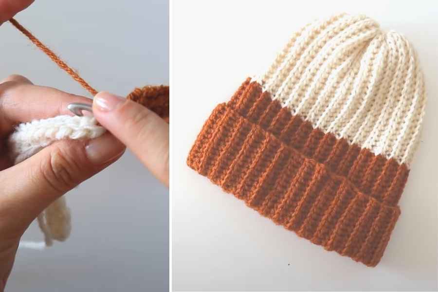 - Add a few rounds of single crochet or front post/back post double crochet for a stretchy ribbed brim.