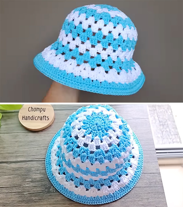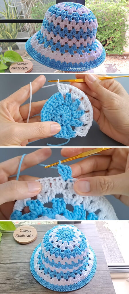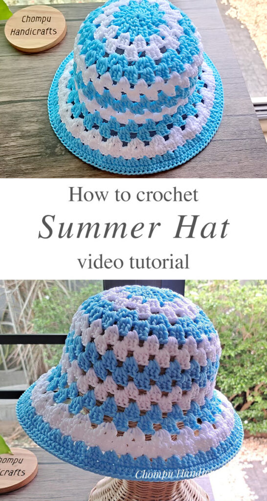 Tutorial and photos of this crochet summer hat by: Chompu Handicrafts.