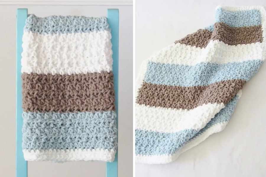 This free pattern is soft, simple, and perfect for beginners or experienced crocheters looking for a quick, heartwarming project. Choose baby blues, soft grays, or go bold with stripes—it’s all about comfort and love.