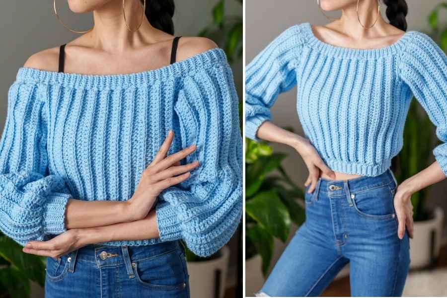 A crochet off-the-shoulder top is a beautiful and breezy addition to any handmade wardrobe. With a simple shape and fun neckline, it’s easy to customize in any color, sleeve length, or size. Whether you dress it up or down, this top is sure to become one of your favorite crochet garments.