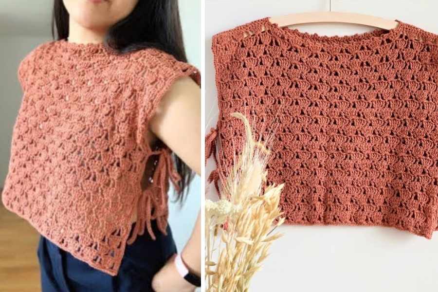 The top is worked using a simple lace stitch repeat—often using chains, double crochets, or shells—that’s easy to memorize. This makes it perfect for beginners and ideal as a relaxing project for more experienced crocheters. Despite its simplicity, the lacy design adds visual interest and breathability.